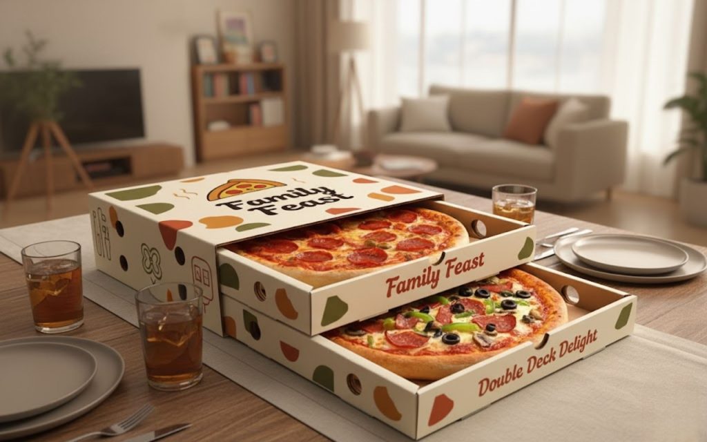 نکته‌ی حرفه‌ای: اگه برندت پیتزاهای خاص یا چندلایه داره، بهتره باکس اختصاصی با قالب سفارشی طراحی بشه. اینطوری هم ظاهر کارت تمیزتره، هم حس برندت توی ذهن مشتری موندگار می‌شه.